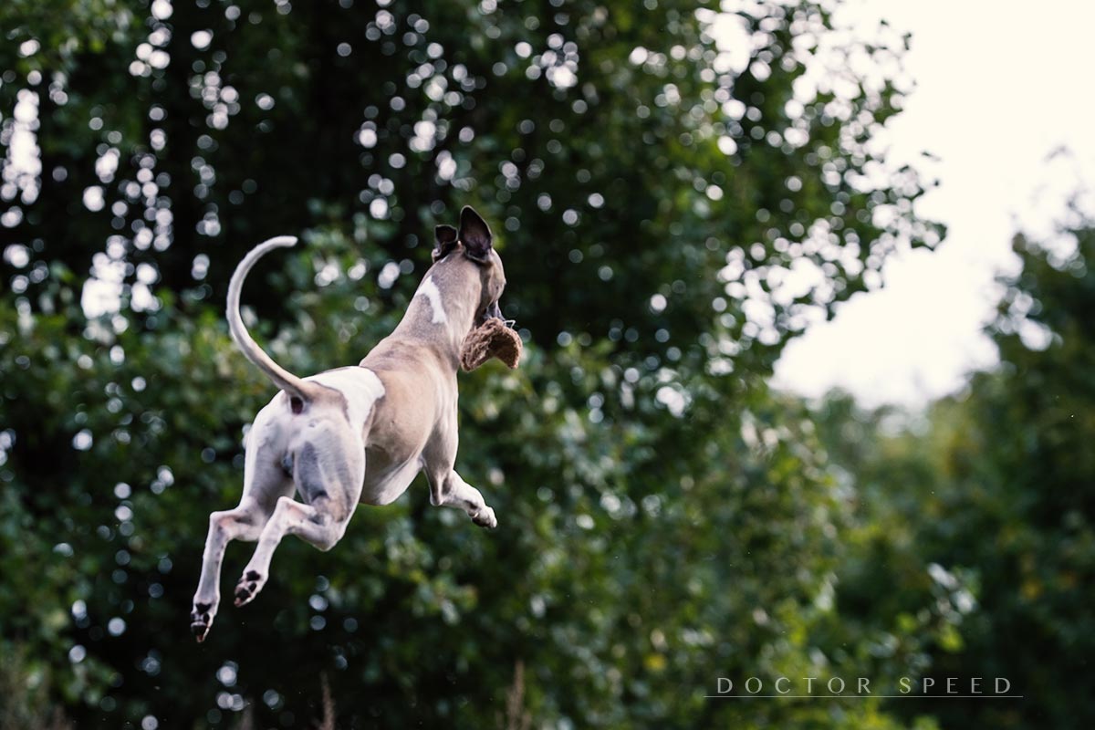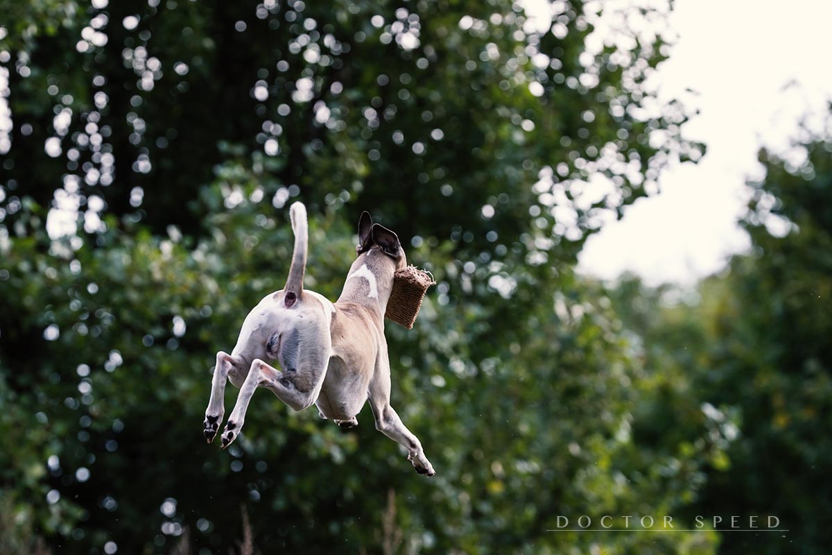Sie ist etwa so groß wie Danny, sehr lustig, sehr aktiv und extrem zappelig. Sie lebt zusammen mit einer alten Jack-Russel-Hündin, die aber wohl mehr genervt als begeistert ist von der Anwesenheit des roten Energiebündels. Ich weiß nicht, ob die Besitzer Thyra jemals freiwillig von der Leine lassen, aber das spielt auch keine Rolle. Denn Thyra entscheidet das neuerdings selbst. Wenn sie frei Laufen will, dann leint sie sich selbst ab. Ein kurzer Hops nach hinten und sie ist raus aus ihrem Halsband und – seit kurzem auch – aus dem Halti. Es gibt wohl nicht unnötigeres für diesen Hund als ein Halti, aber sei’s drum, das ist nur meine Sicht der Dinge.