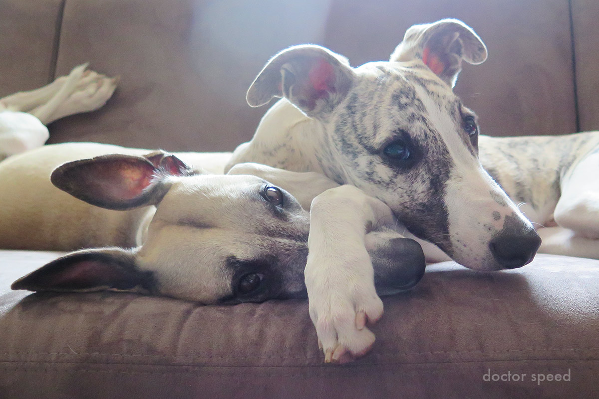 Danny weiß mittlerweile kaum noch wohin mit seiner Energie, ist allerdings auch nicht gewillt, durch den Regen zu laufen. Das ist leider ein Widerspruch, der kaum auflösbar ist. Mal abgesehen von ein paar morgendlichen Tobeanfällen ist er dennoch sehr ausgeglichen und ruhig. Für Futterspiele ist er, wen wundert es, immer zu haben, doch noch nicht einmal Danny kann den ganzen Tag fressen. Und die Vorstellung hier bald zwei Charly-Klone auf dem Chaiselongue liegen zu haben, treibt mich in den Wahnsinn. Das Wetter macht mich irre!