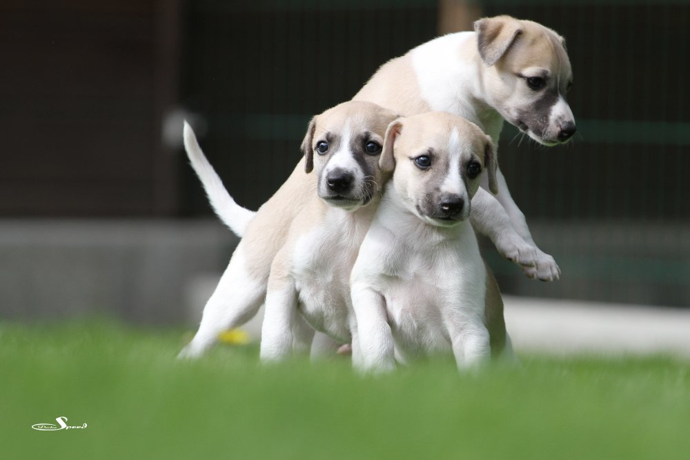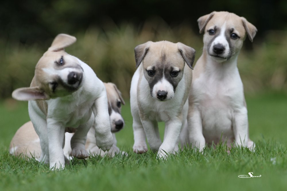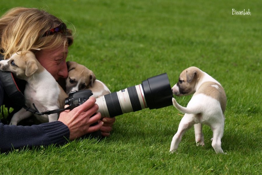 Die vier Mono-Klone sind nun 5 Wochen alt und werden von Tag zu Tag mobiler. Und neugieriger. Und sie haben sehr spitze Zähne. Aber keiner hat gesagt, es sei leicht, Welpen zu fotografieren.