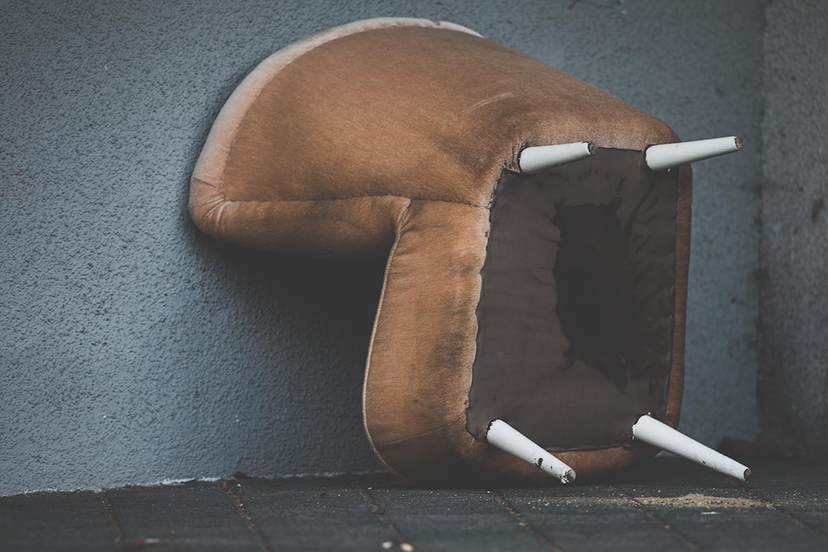 Das dritte Mal kam ich von einem Haldenflitz und hatte die 1D X und das fette 300er 1:2,8 um den Hals hängen. Der Sessel! Ob er noch da ist? Ich ging mit den Hunden kurz um den Block. Irgendwer hatte ihn umgedreht. Diese Siedlung ist nicht gerade die feinste und ich fühlte mich mit dem dicken Rohr vollkommen deplatziert, aber die Fotos wollte ich unbedingt haben.