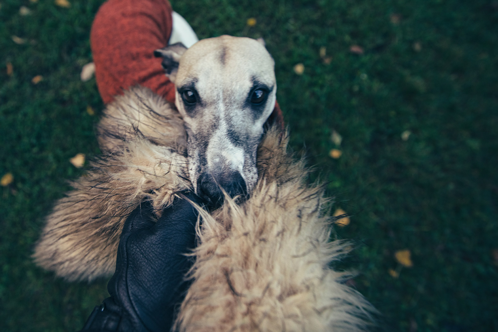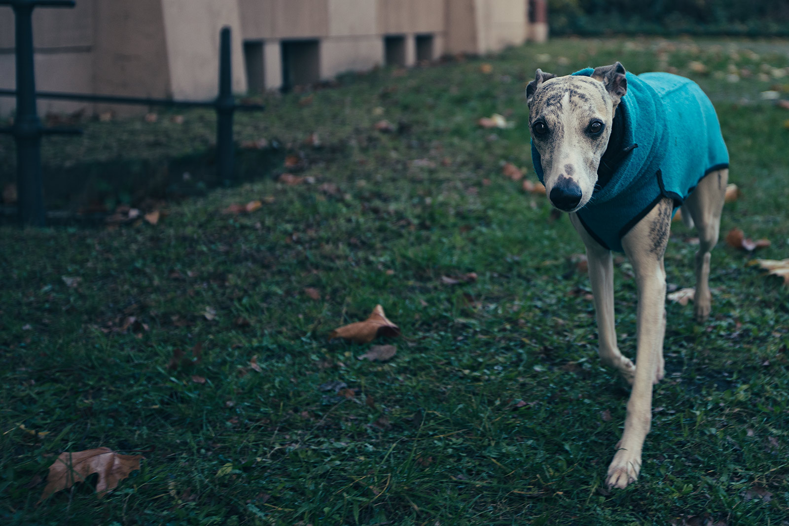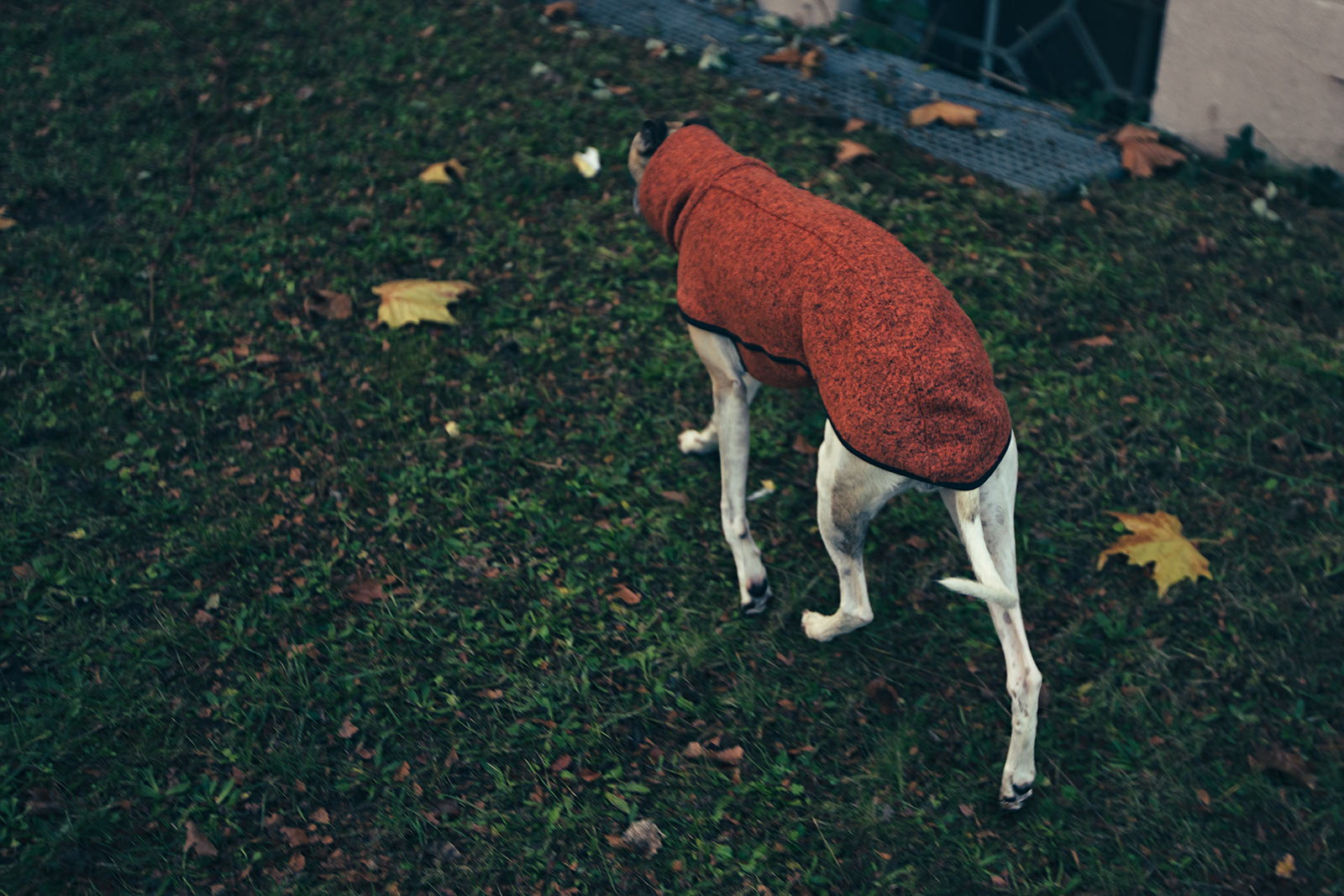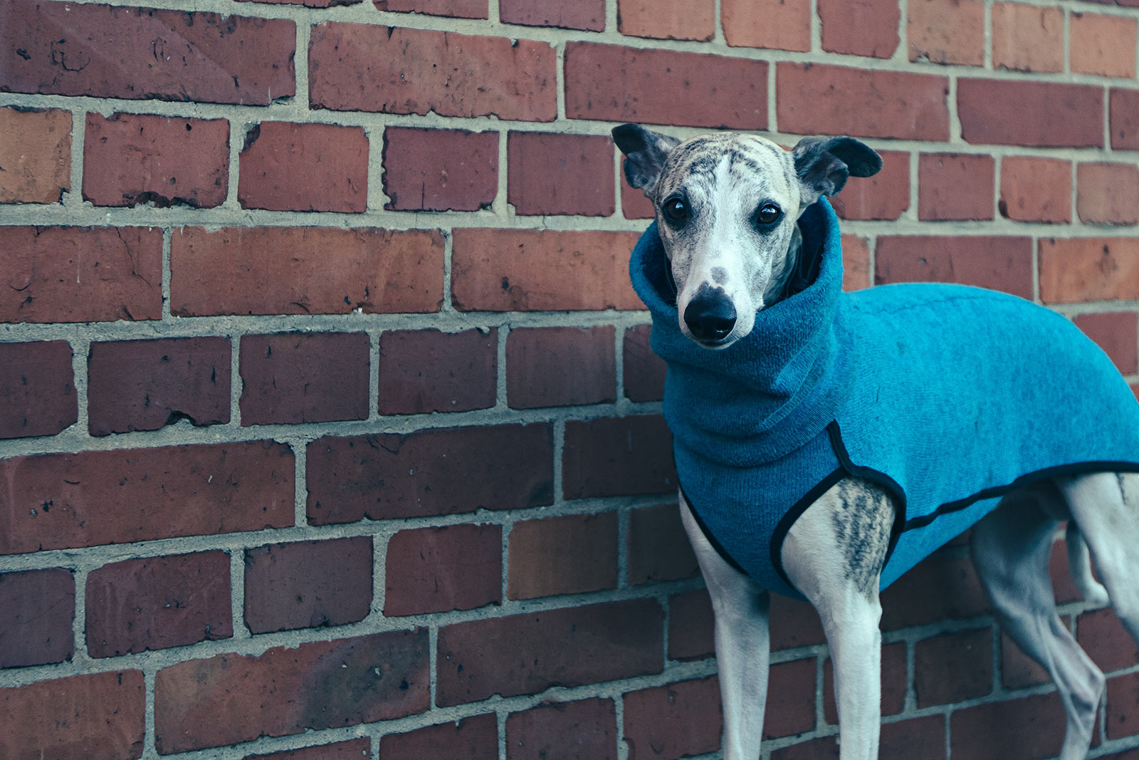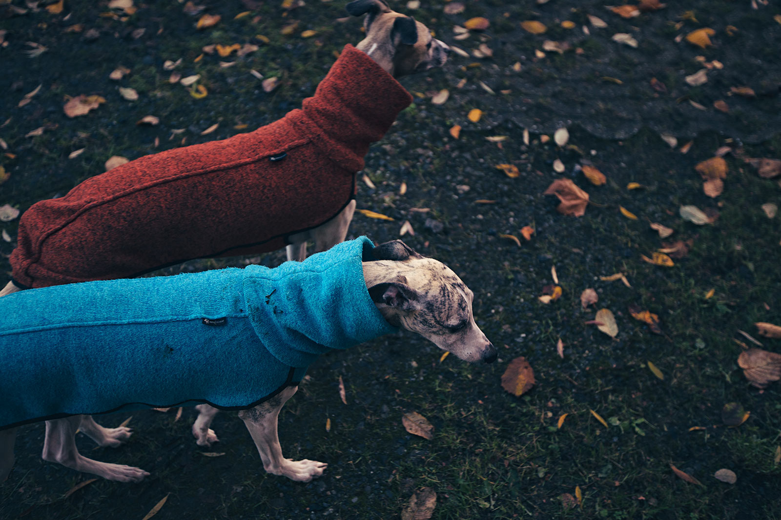 Nun muss ich aber doch noch einmal zu den Hippiepullovern zurück, denn mit diesem Seitenhieb fühle ich mich und den Rest der Windhundgemeinde falsch verstanden. Der Hippiepullover (ich frage mich, welches Modell der Autor der beiden Artikel auf der Messe gesehen hat) ist kein schickes Accessoire, sondern eine Notwendigkeit. Whippets zum Beispiel (Windhunde FCI Gruppe 10) haben eine konstante Körpertemperatur von rund 39 Grad. In einer recht kalten Halle, wie hier bei der World Dog Show in Leipzig, kühlen sie extrem schnell aus. Um ihre lebenserhaltende Organe warm zu halten und dafür zu sorgen, dass sie sich wohl fühlen, ströppt man ihnen muckelige Pullover oder weiche Mäntel über. Das hat nichts mit Etepetete oder dem Schmuckbedürfnis der Besitzer zu tun. Natürlich gibt es diese Pullover auch in Schön. Schließlich sagt niemand, dass Nützliches zwangsläufig scheiße aussehen muss.