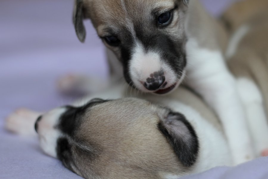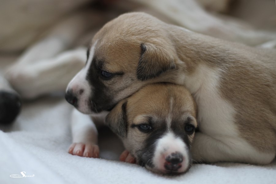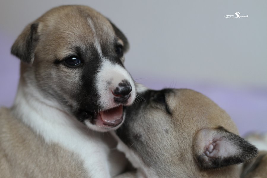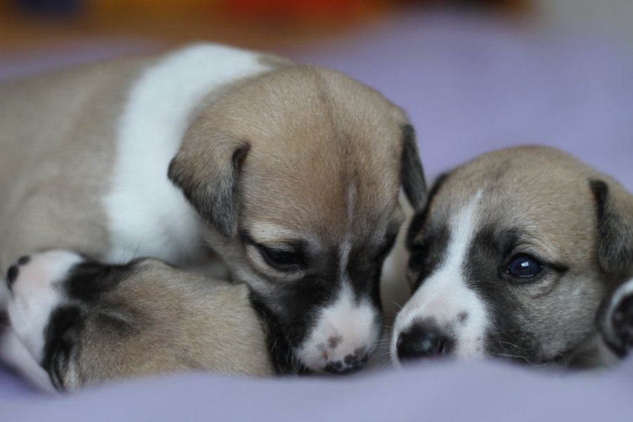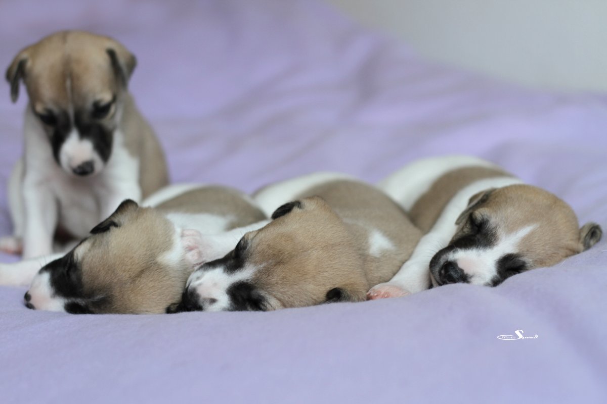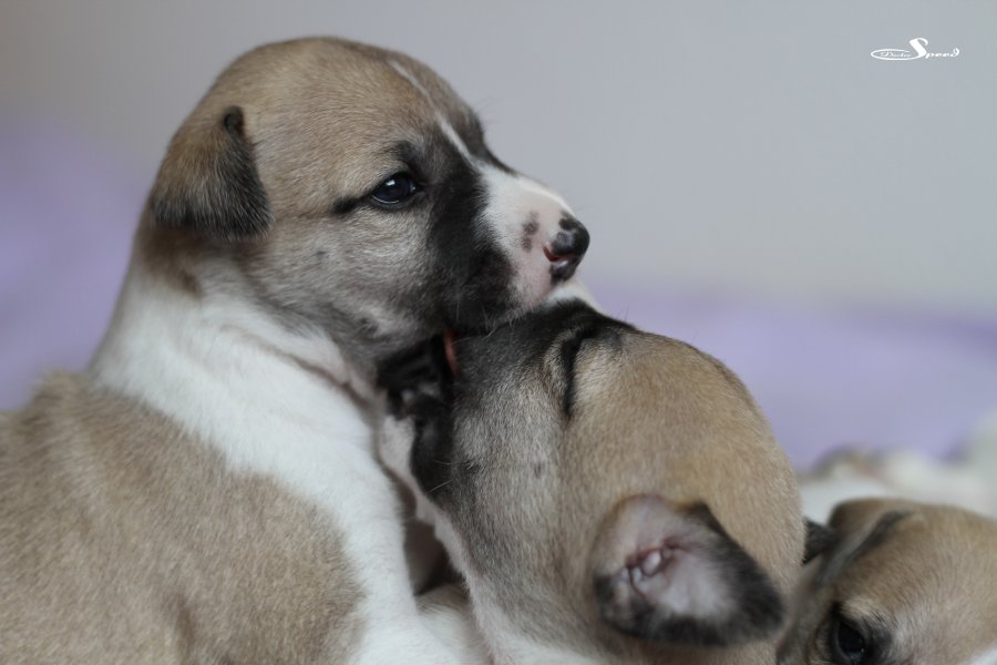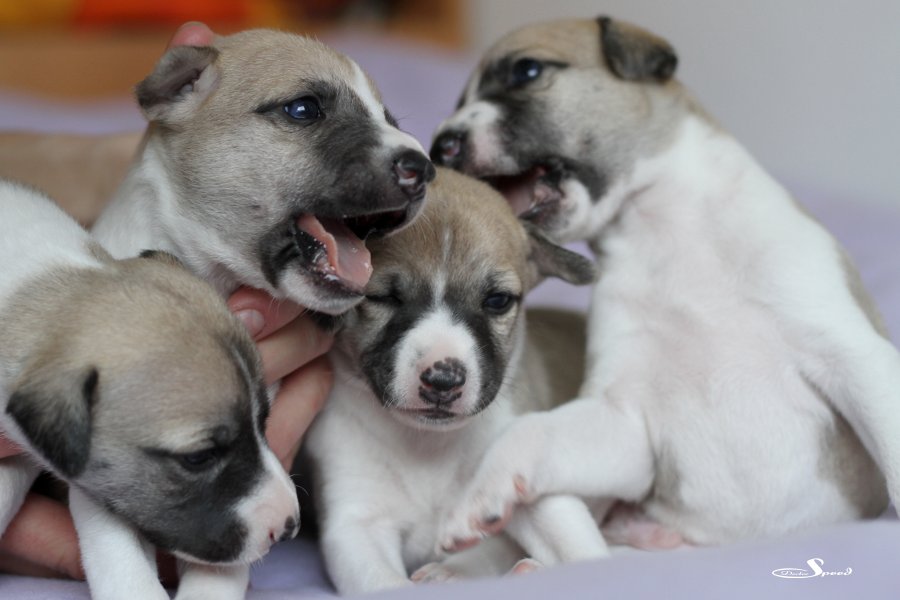 Langsam aber sicher kommt Bewegung in die Vierergang bei semper-crescendo. Die Welpen von Eve und Mono sind nun fast drei Wochen alt und balgen sich schon durch die Wurfkiste.