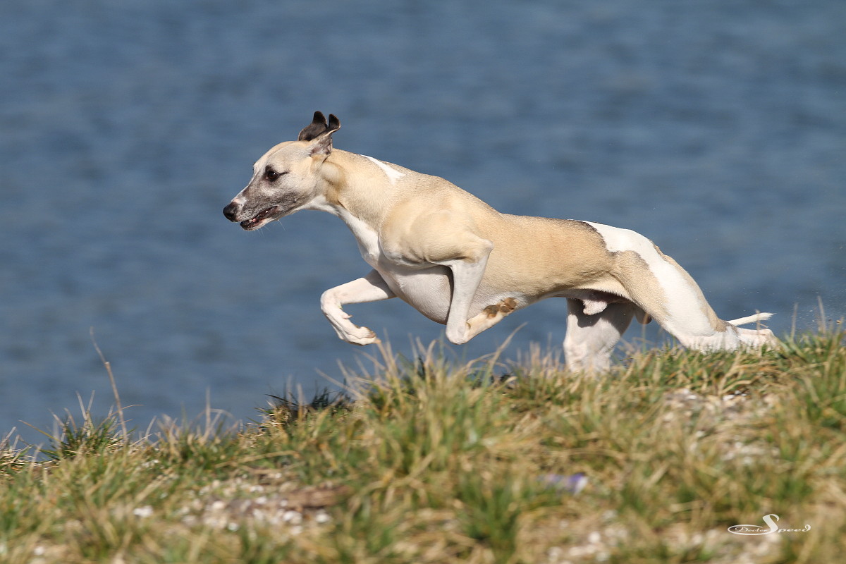 Mono hat den Frühling gestern ganz formlos eingeläutet, indem er ein Bad nahm. Im Rhein. Tut er das freiwillig, dann ist es whippetwarm. Diesen Begriff sollte man unbedingt in die offiziellen Wettervorhersagen aufnehmen, finde ich. Denn dann kann ich zumindest planen. Gestern habe mich nämlich schwarz geärgert, dass ich keine Gummistiefel an hatte. Dann hätte ich Monos Planscheinlage vom Wasser aus fotografieren können.